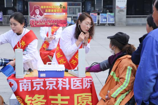 2017年3月5日是第54个学习雷锋精神纪念日。 3月5日上午,南京妇儿堂医院联合南京站综合管理办、南京站广场治安管理处共同开展学雷锋志愿服务活动。5号上午一大早,南京妇儿堂医院医护人员作为志愿者,放着《学习雷锋好榜样》歌曲,队员们一路高歌,激情澎湃,仿佛又回到了那个激情燃烧的岁月。大家来到南京火车站南广场,为往来的乘客朋友免费义诊、免费送水、清扫垃圾、指引,让雷锋精神薪火相传,继续发扬光大!